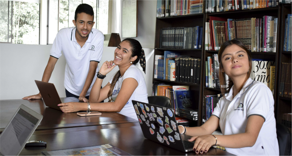 Las tutorías en la Estrategia Híbrida Educativa son espacios donde los estudiantes se reúnen con los profesores y demás compañeros para aclarar dudas o debatir sobre nuevos conocimientos. Las tutorías pueden ser presenciales cuando los estudiantes acuden al colegio, o virtuales cuando se encuentran fuera de la ciudad o el país por temporadas largas. En cuanto a esto último, los estudiantes y profesores utilizan herramientas como Google Meet, que les permite verse y compartir información relevante, o el chat que ofrecen los servicios de Google Workspace, a los que el colegio está afiliado y están disponibles a través del correo institucional.